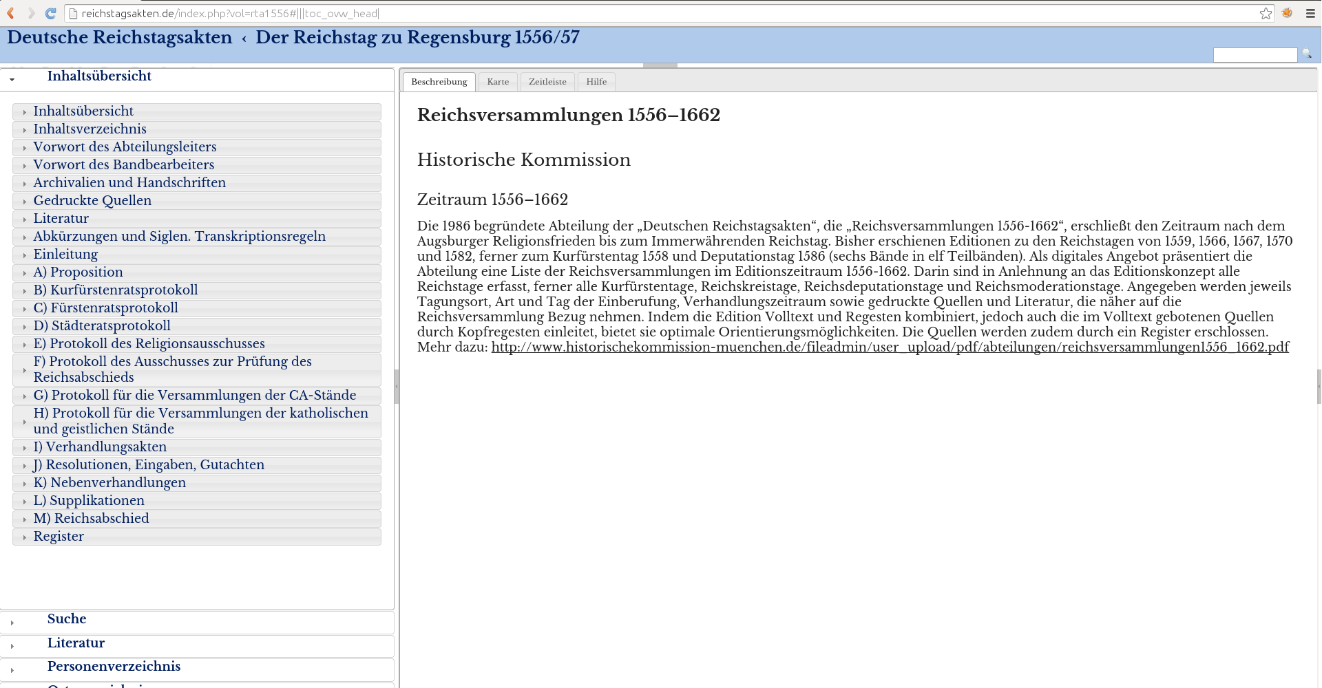 Der Band der Edition wird zentral erschlossen über die linke Spalte: